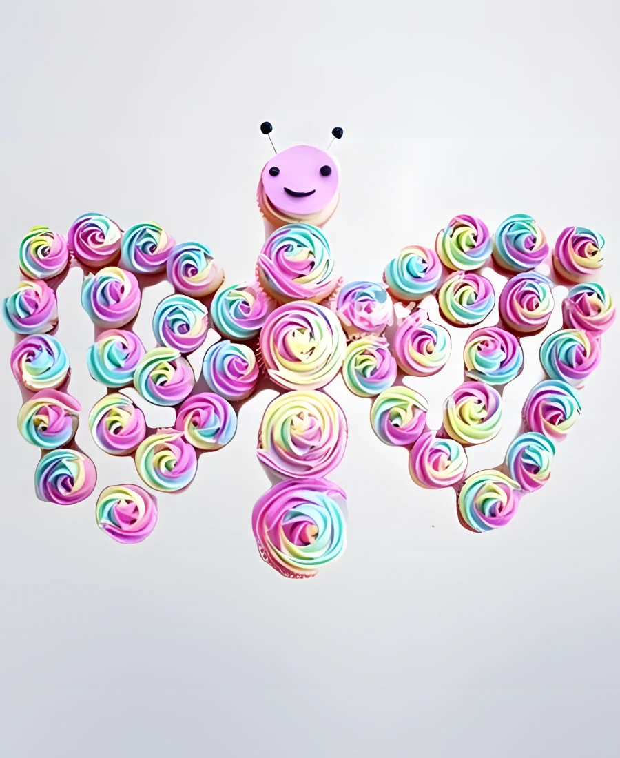 Торт из капкейков в виде разноцветной бабочки