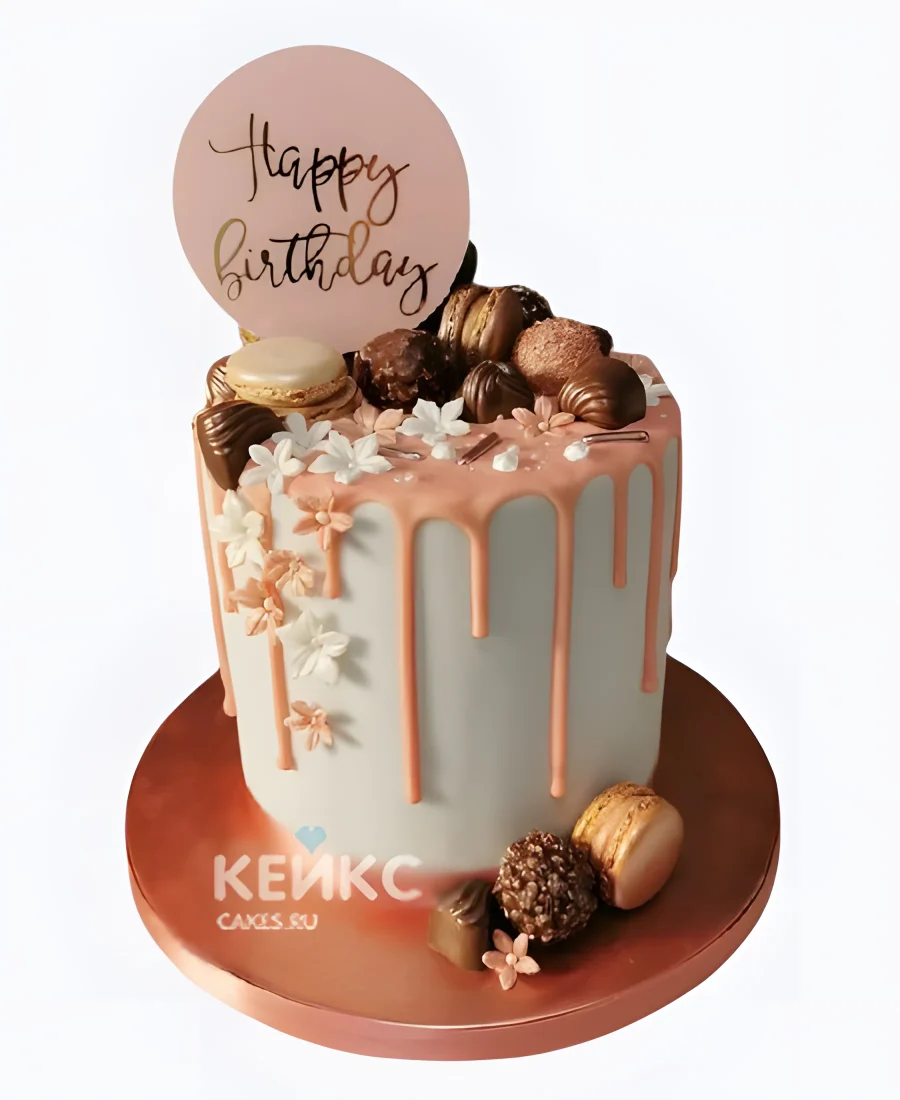 Торт из мастики с подтеками и конфетами