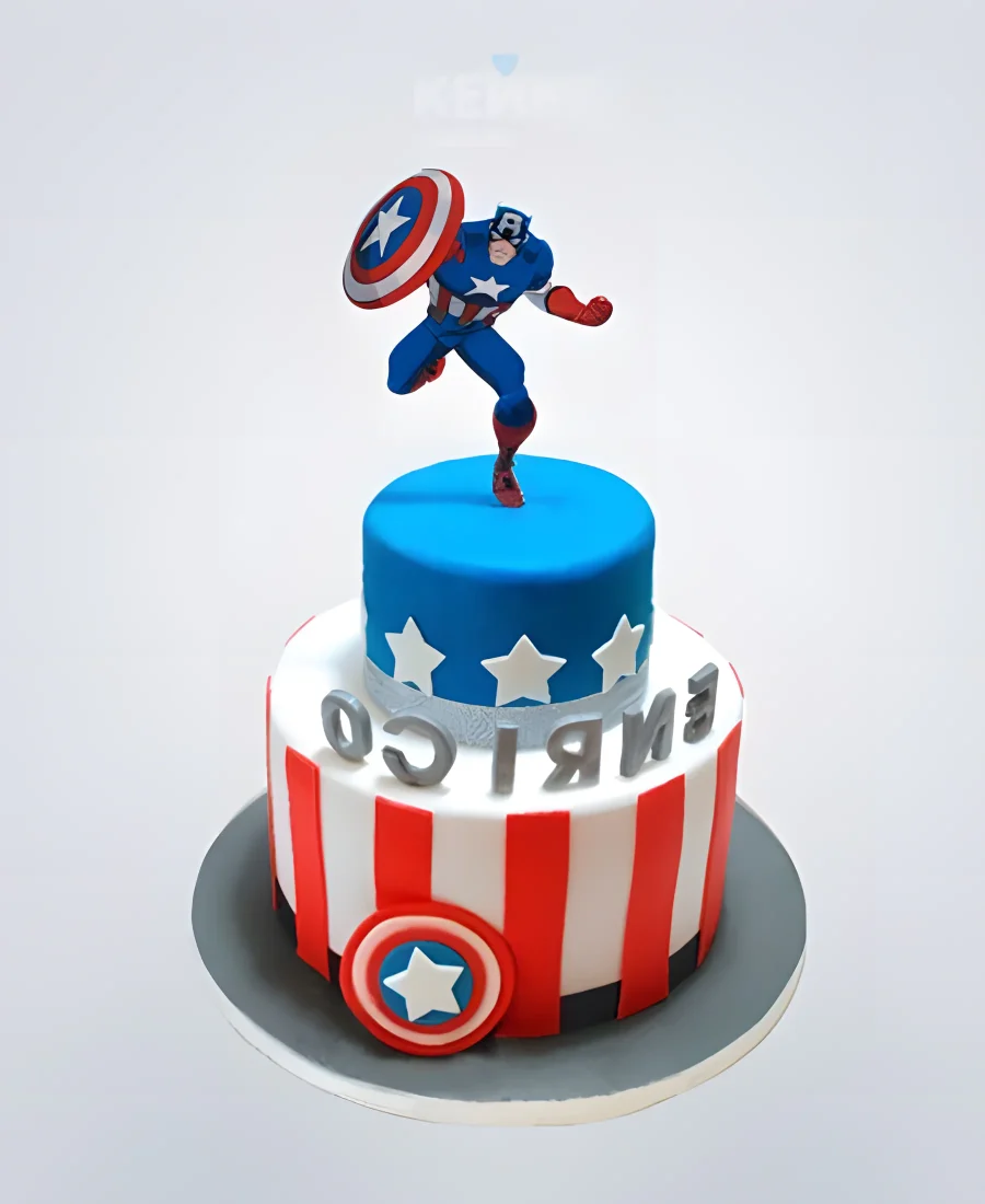 Торт с фигуркой капитана америки и надписью
