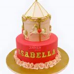 Торт в виде красно-розовой карусели