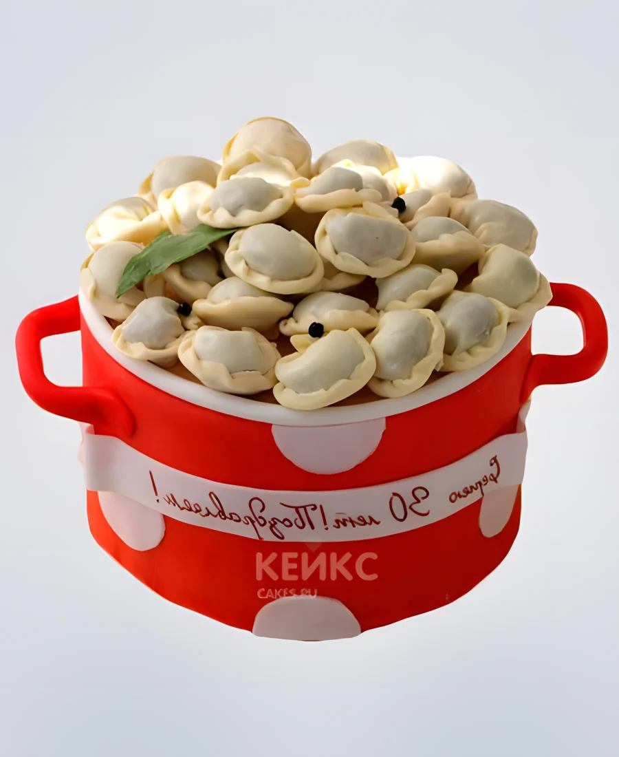 Торт в форме кастрюли с пельменями
