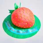 Невероятно реалистичная клубника из мастики выглядит словно сочная ягода, только что сорванная с грядки. Ярко-красная поверхность с контрастными зелёными листиками создаёт эффект натуральности. Изящная надпись добавляет торту индивидуальности, превращая его в настоящее произведение кондитерского искусства.