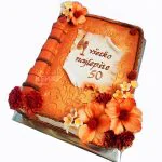 Этот изящный квадратный торт выглядит как страница из роскошной книги. Нежная мастика цвета слоновой кости создает ощущение дорогого пергамента, а объемные розовые и белые цветы словно оживают на его поверхности. Каждый лепесток проработан с удивительной точностью, создавая эффект настоящего букета. Сдержанная золотая окантовка добавляет торту благородства, напоминая переплет старинного фолианта. Композиция цветов расположена асимметрично, что придает дизайну легкость и воздушность.