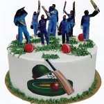 Этот торт — настоящий командный талисман! На белоснежном креме ярко выделяется фотопечать с изображением игроков, создавая эффект живого момента. Простые, но выразительные аппликации по краям подчеркивают спортивную тематику. Четкие контрасты белого и цветных элементов придают торту динамичный, энергичный вид. Такой торт не просто десерт — это визуальное воплощение командного духа и общих достижений.