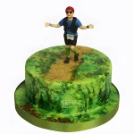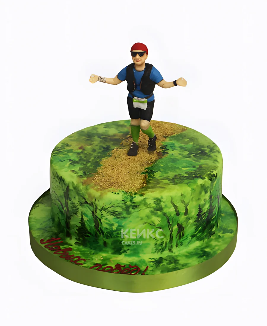 Торт в виде зеленой поляны со спортсменами