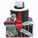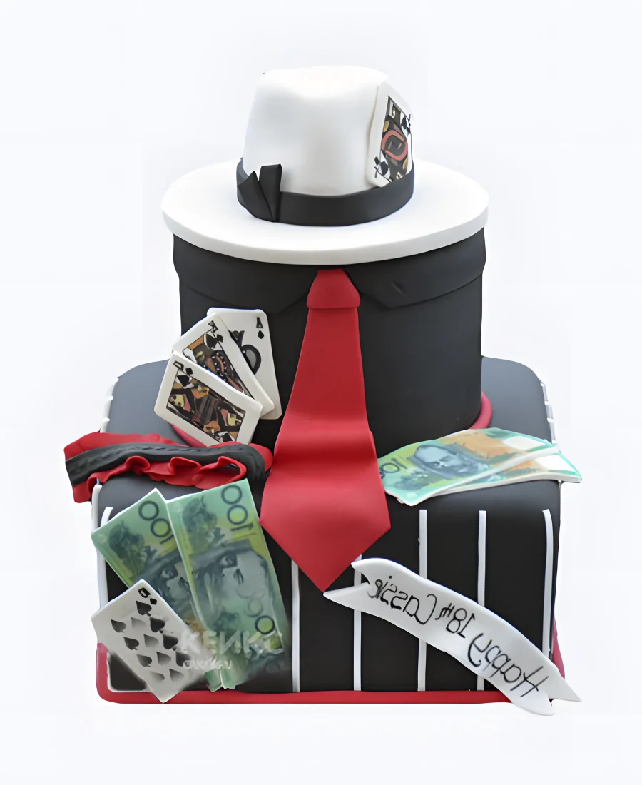 Стильный черный торт с белой шляпой и красным галстуком