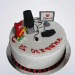 Торт белого цвета с фигуркой компьютера