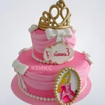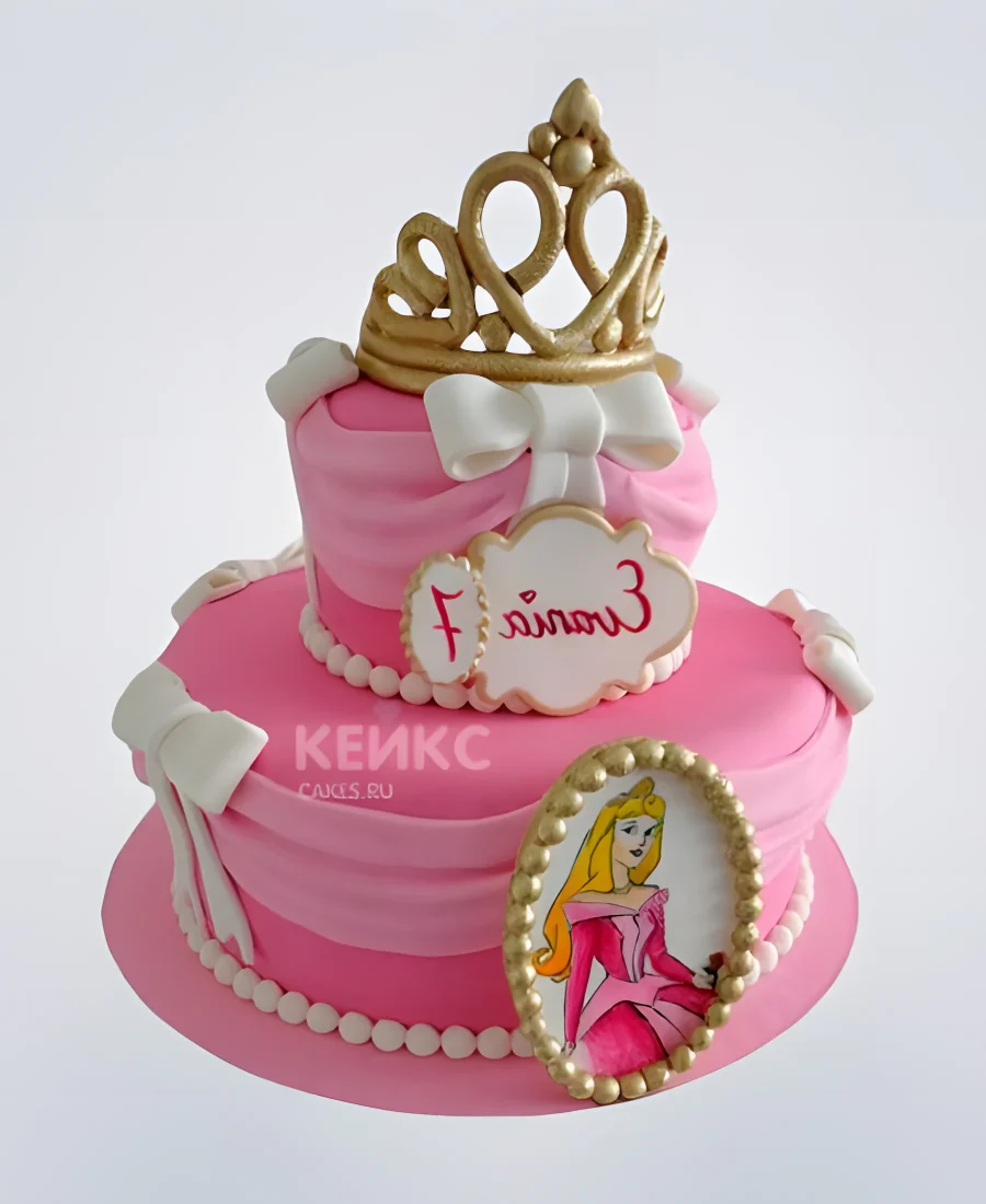Розовый торт с фото принцессы и короной