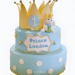 Голубой торт в горошек с короной и надписью