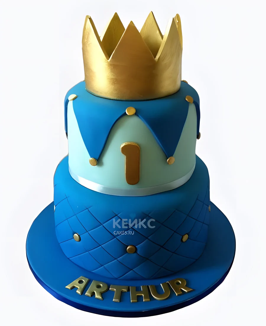 Синий торт с золотой короной и цифрой