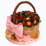 Торт корзина с фруктами и ягодами и шикарным бантом