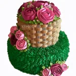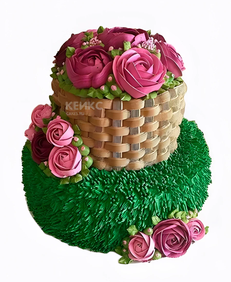 Торт корзина с розами и зеленой траве
