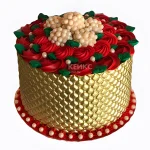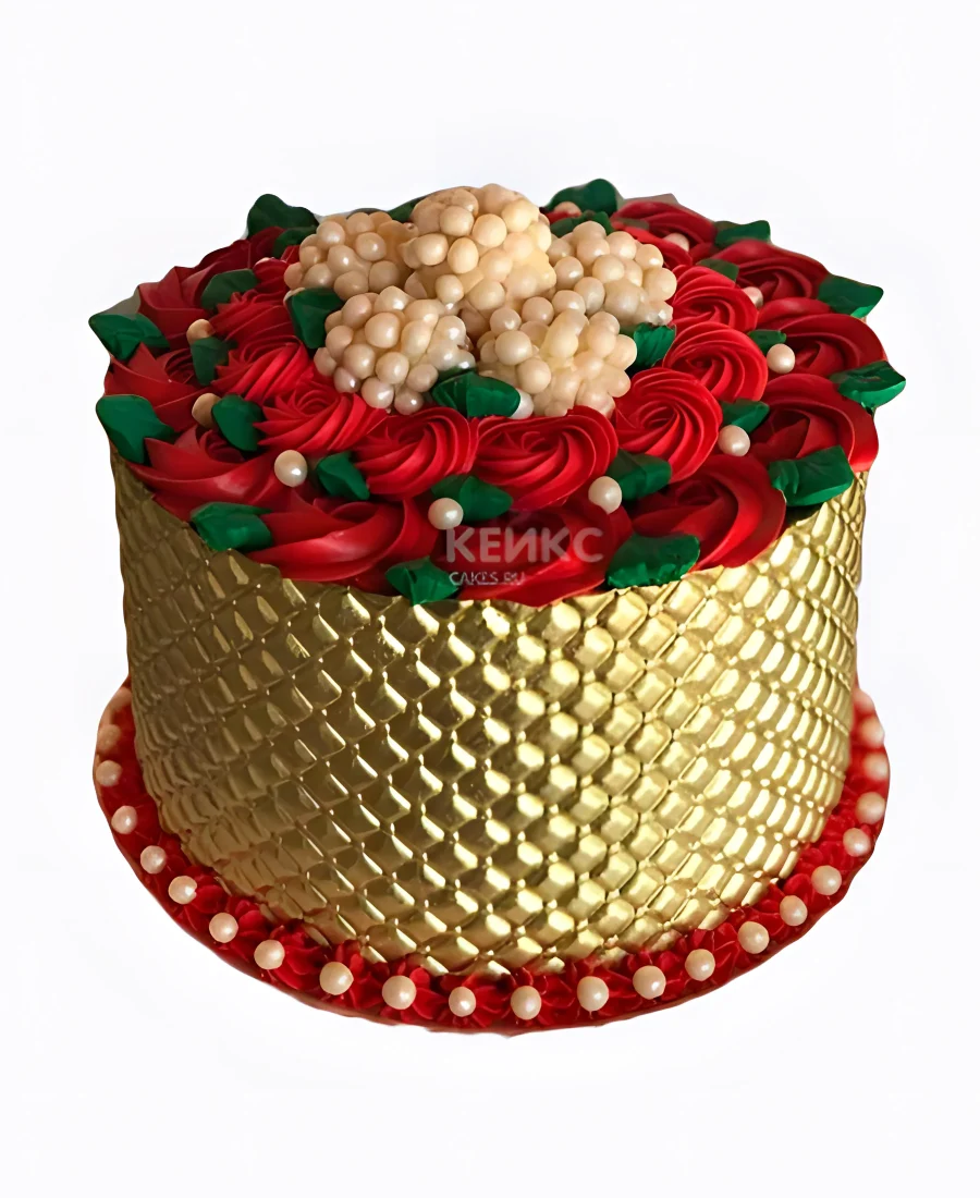 Золотой торт корзина с розами