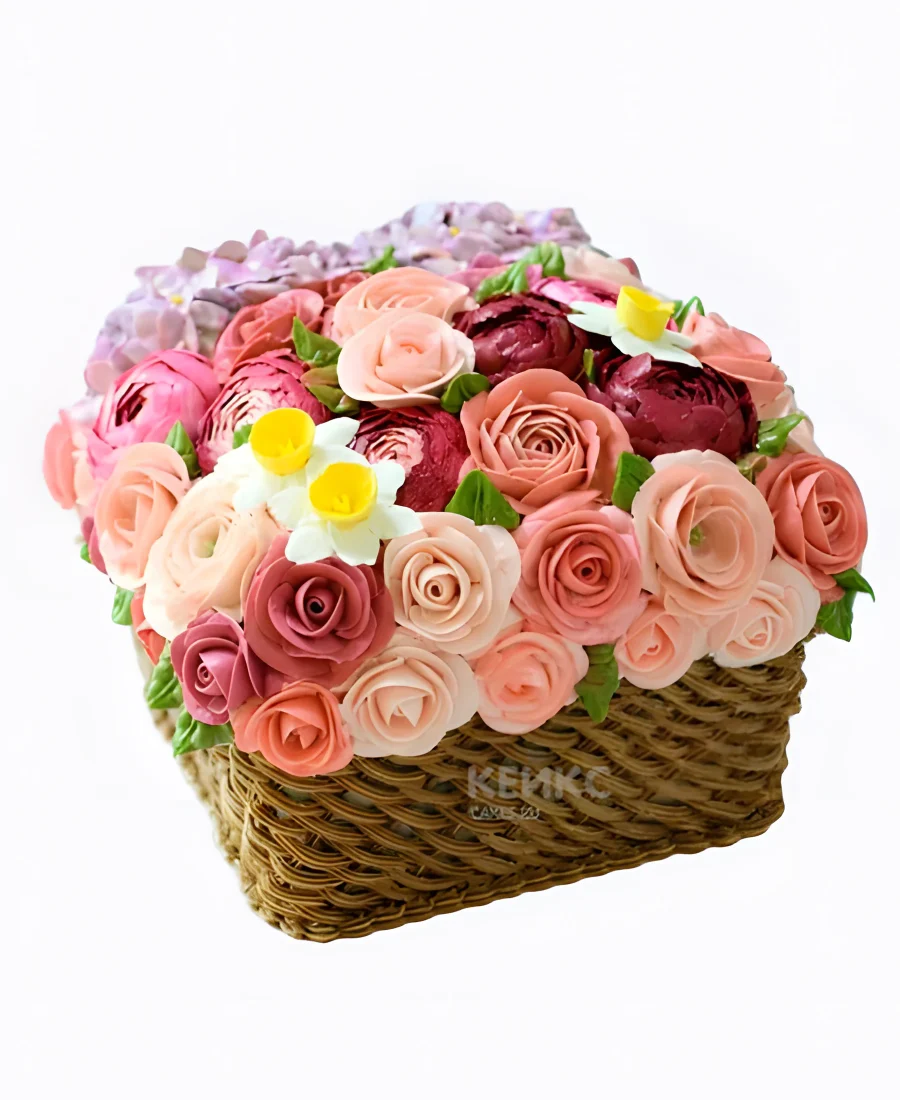 Торт корзина с живыми розами