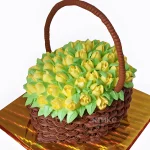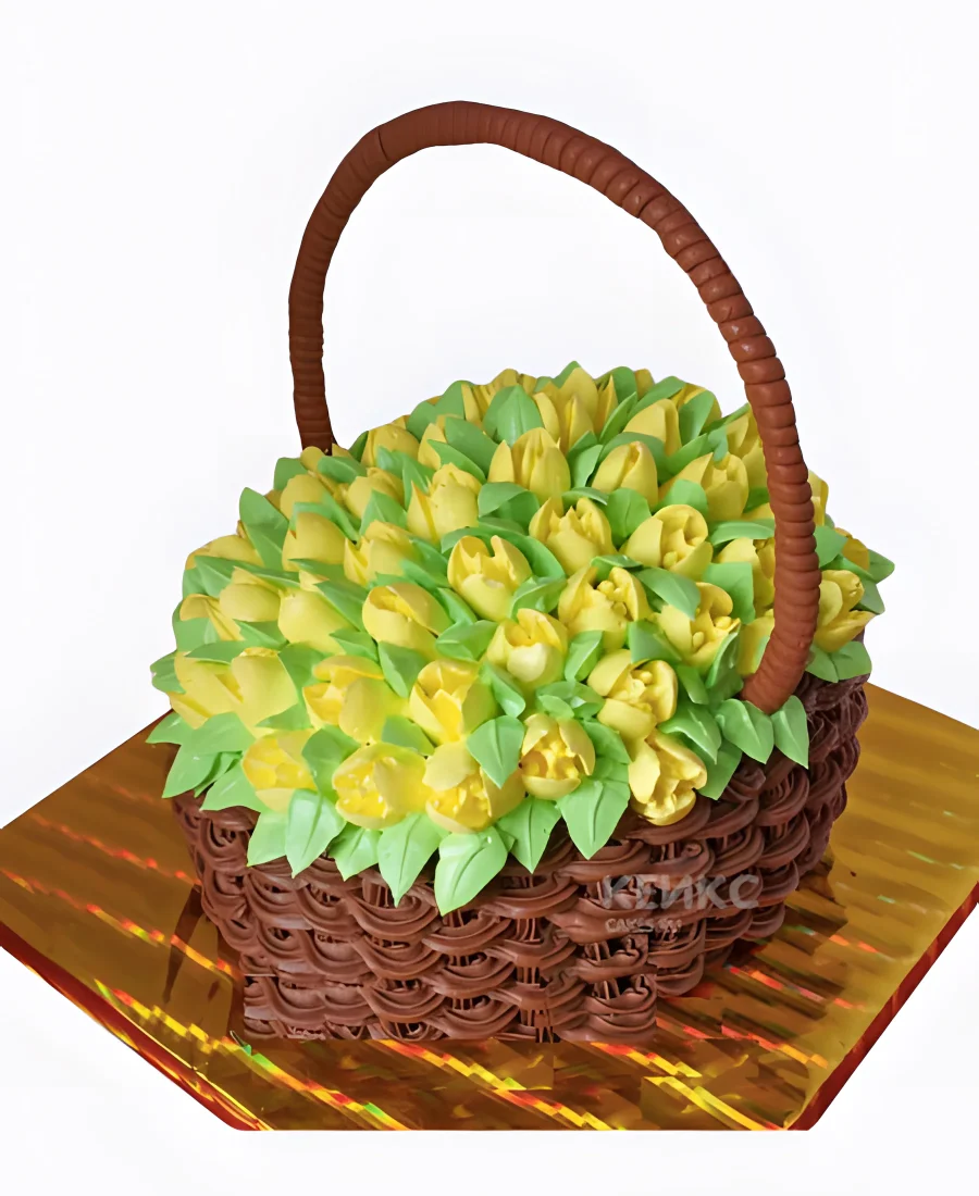 Торт корзина с желтыми тюльпанами