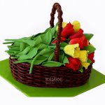 Торт корзина с тюльпанами