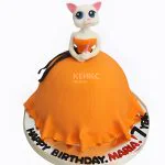 Торт в форме кошки в оранжевом платье