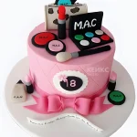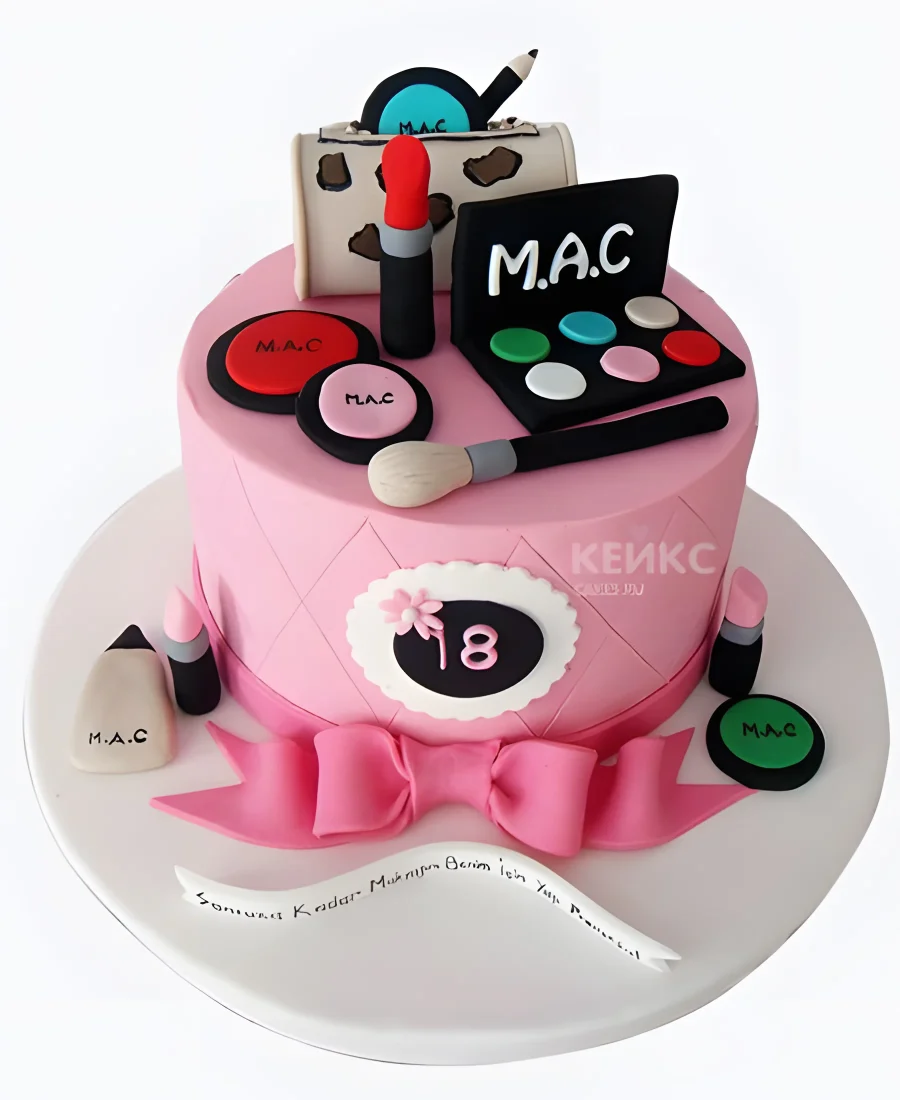 Розовый торт с бантом и косметикой