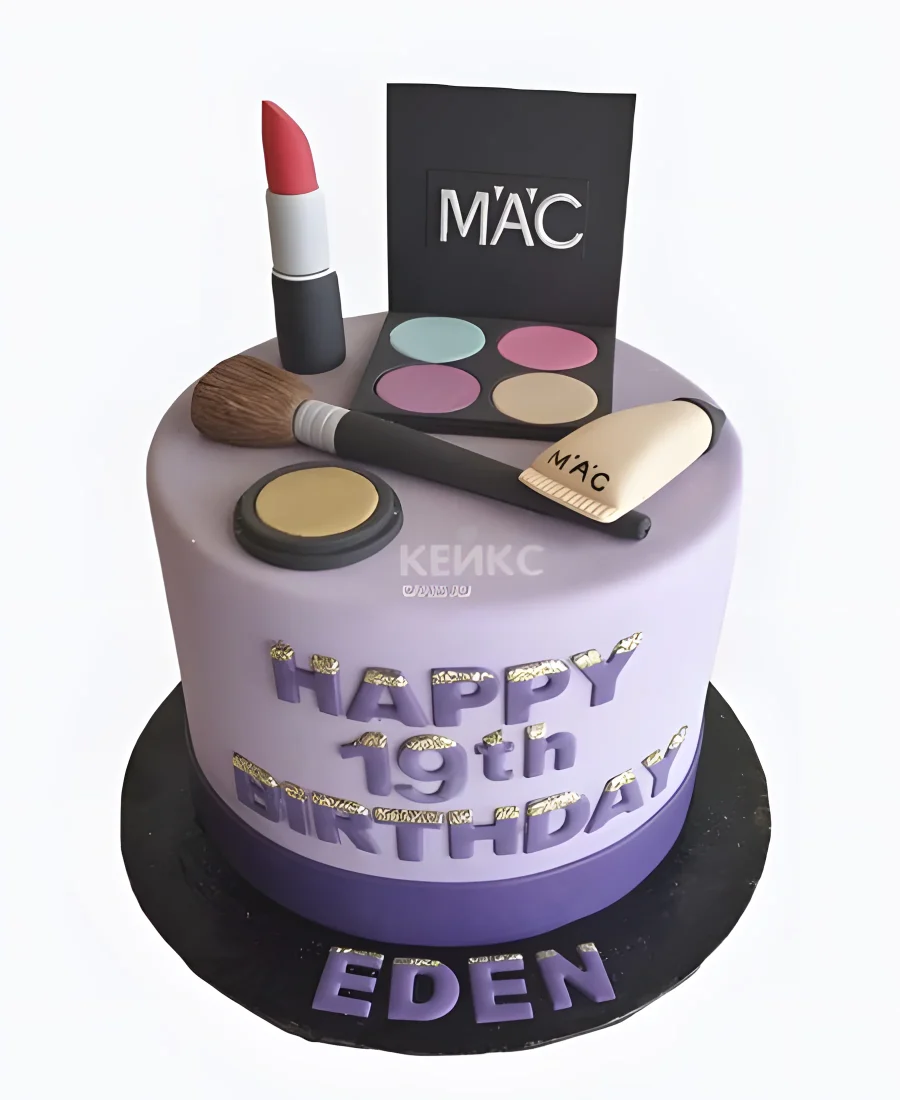 Фиолетовый торт с надписью и косметикой
