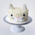 Очаровательный круглый торт в виде мордочки пушистого котенка. Нежное кремовое покрытие создает эффект мягкой шерстки. Декор выполнен в виде аппликации, передающей милые черты кошачьей мордочки: выразительные глазки, носик и ушки. Одноярусный дизайн делает торт компактным и удобным для сервировки. Идеальный вариант для любителей котиков и трогательных деталей.