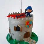 Торт в виде крепости с рыцарем и красным флагом