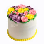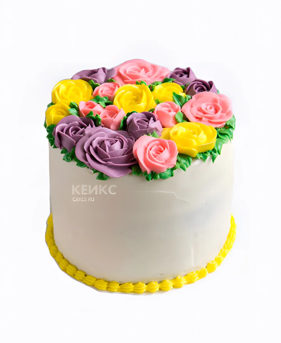 Белый торт с разноцветными цветами