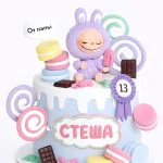 Торт Лабубу в пастельных тонах со сладостями