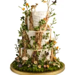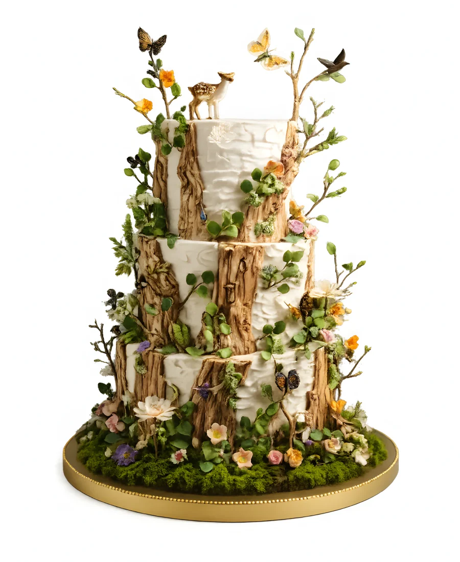 Торт лесной пейзаж с оленем и бабочками