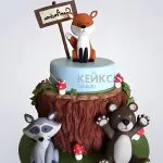 Этот двухъярусный круглый торт украшен нежной мастикой с реалистичными фигурками лесных животных. Главным элементом декора стала очаровательная лиса, окруженная другими обитателями леса. Тщательно проработанные детали создают атмосферу волшебного леса, а гармоничная цветовая гамма делает торт настоящим произведением кондитерского искусства. Идеальный выбор для тематического праздника или дня рождения в природном стиле.
