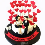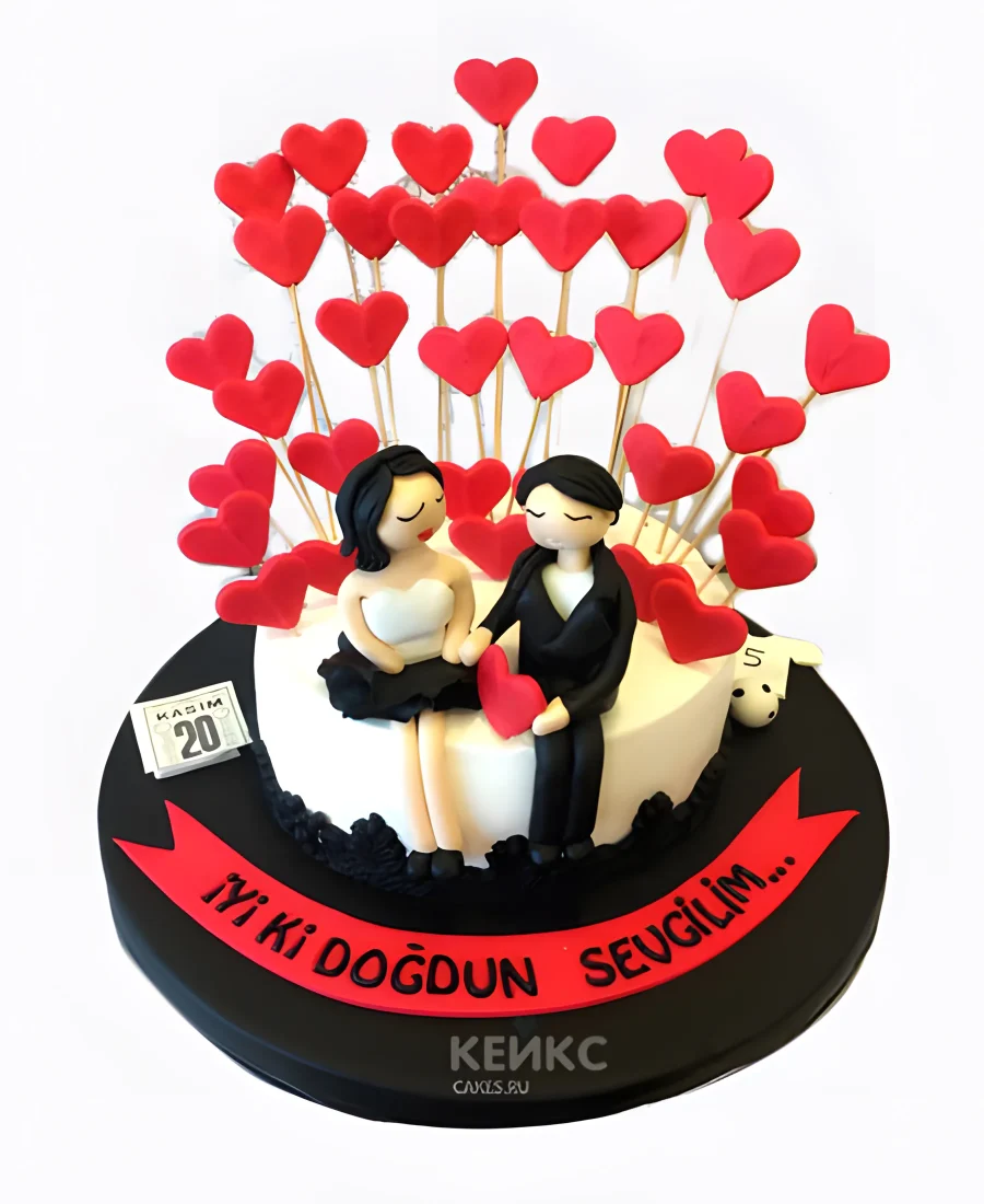 Торт с влюбленными и красными сердечками
