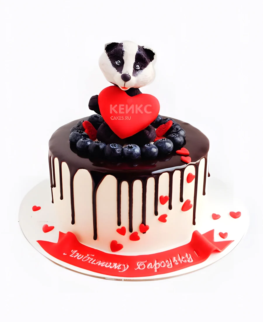 Торт с пандой и красными сердечками