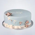 Нежный голубой торт с милыми медвежатами создает трогательную атмосферу праздника. Белоснежные облака и золотистые звезды гармонично дополняют композицию, напоминая о сказочном небе. Фигурки забавных медвежат в голубых шапочках вызывают умиление. Элегантная цветовая гамма и продуманные детали делают этот торт настоящим украшением детского торжества.