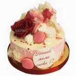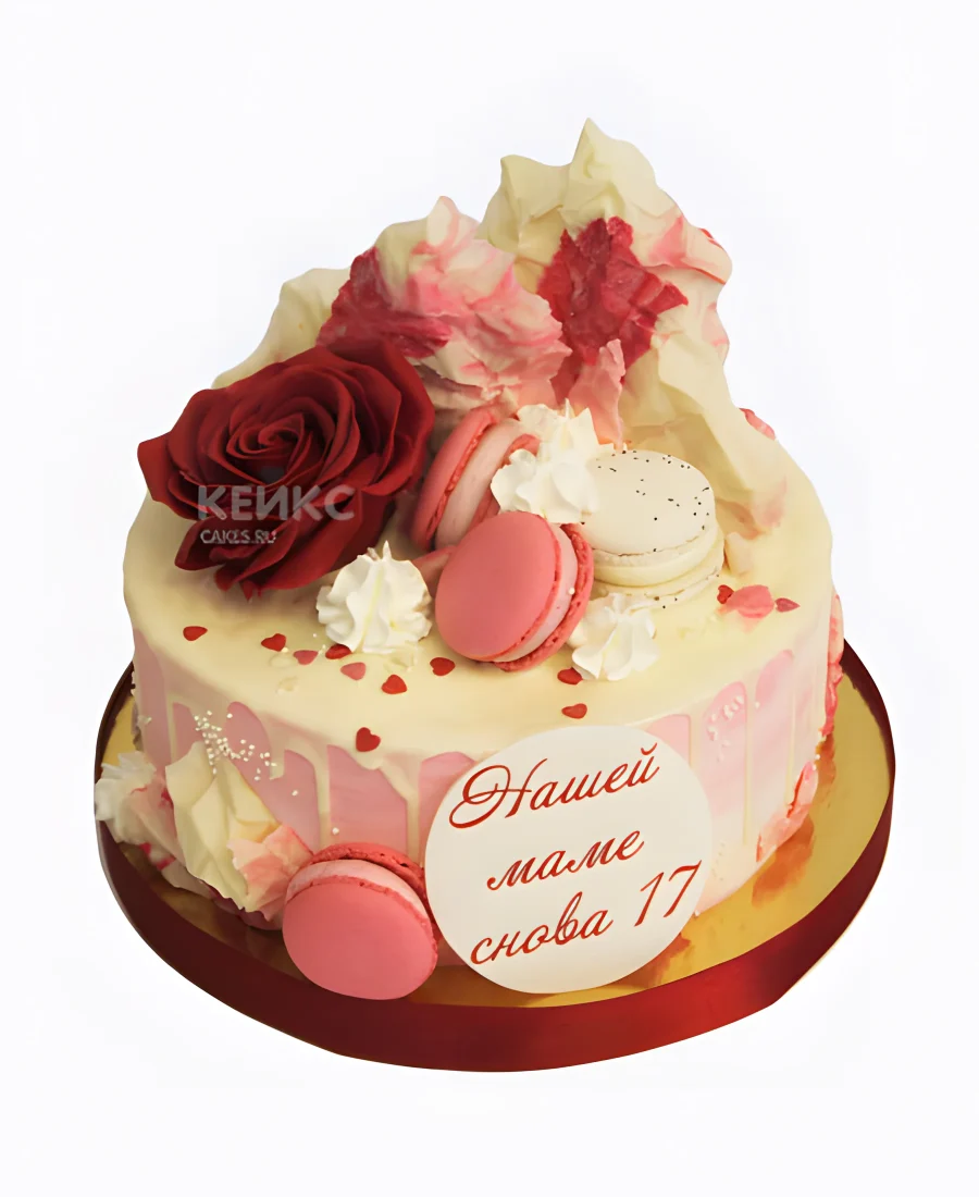 Розовый торт маме на день рождения «Нашей маме снова 17»