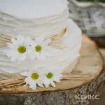 Белый двухъярусный торт с живыми ромашками