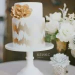 Бело-золотой двухъярусный торт с цветком