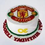 Белый торт Манчестер Юнайтед с надписью и логотипом