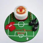 Торт в виде футбольного поля с эмблемой Манчестер Юнайтед