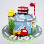 Интересный торт с машинами на дороге и светофором