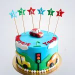 Разноцветный торт с машинками и звездами