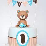Очаровательный круглый торт, украшенный нежной голубой мастикой, создан специально для празднования первого дня рождения мальчика. Главные элементы декора — милый медвежонок и стильная машинка, выполненные из мастики. Лаконичный одноярусный дизайн делает торт аккуратным и гармоничным, идеально подходящим для детского торжества. Голубые оттенки и милые детали создают праздничное настроение.