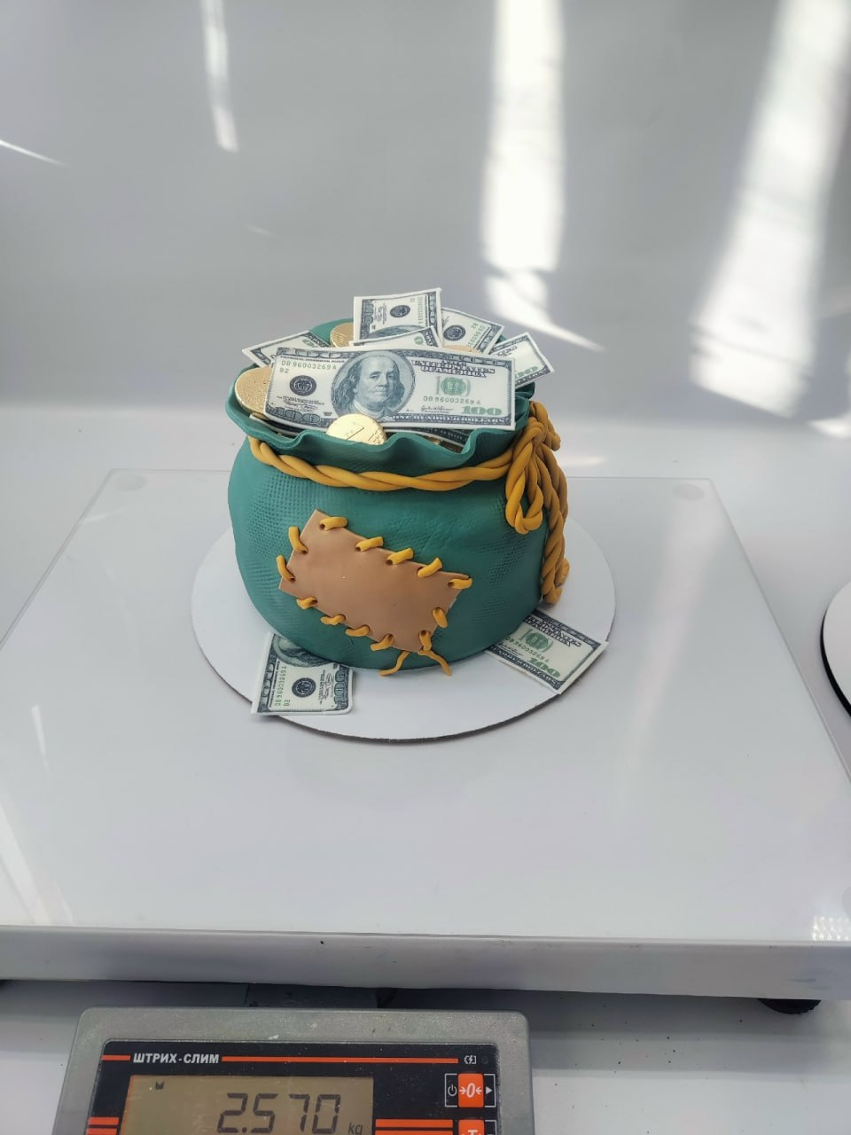 Торт в виде мешка с деньгами