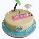 Торт в виде моря с пляжем и девушкой