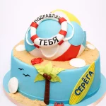 Торт море с мячом и пальмой