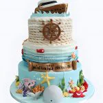 Этот торт словно кусочек моря, застывший в сладком воплощении. Голубые волны из крема переливаются под «солнцем» золотистых акцентов, а посреди этого съедобного океана гордо плывет белоснежный кораблик с шоколадными парусами. Боковые стороны украшены «песочными» узорами, создающими ощущение морского берега. Серебристые капли словно брызги волн добавляют динамики этой сладкой композиции.