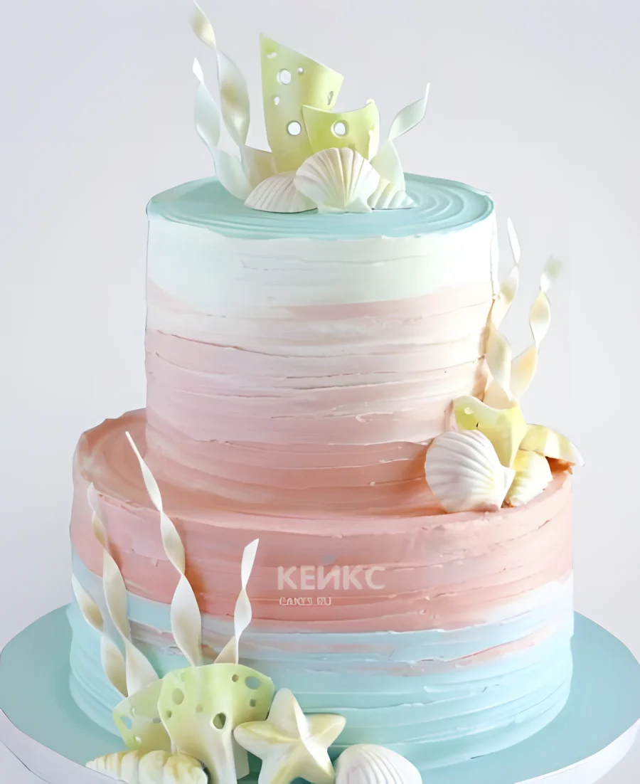 Нежный двухъярусный торт в морском стиле с омбре