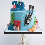 Торт в морском стиле с водолазом и цифрой