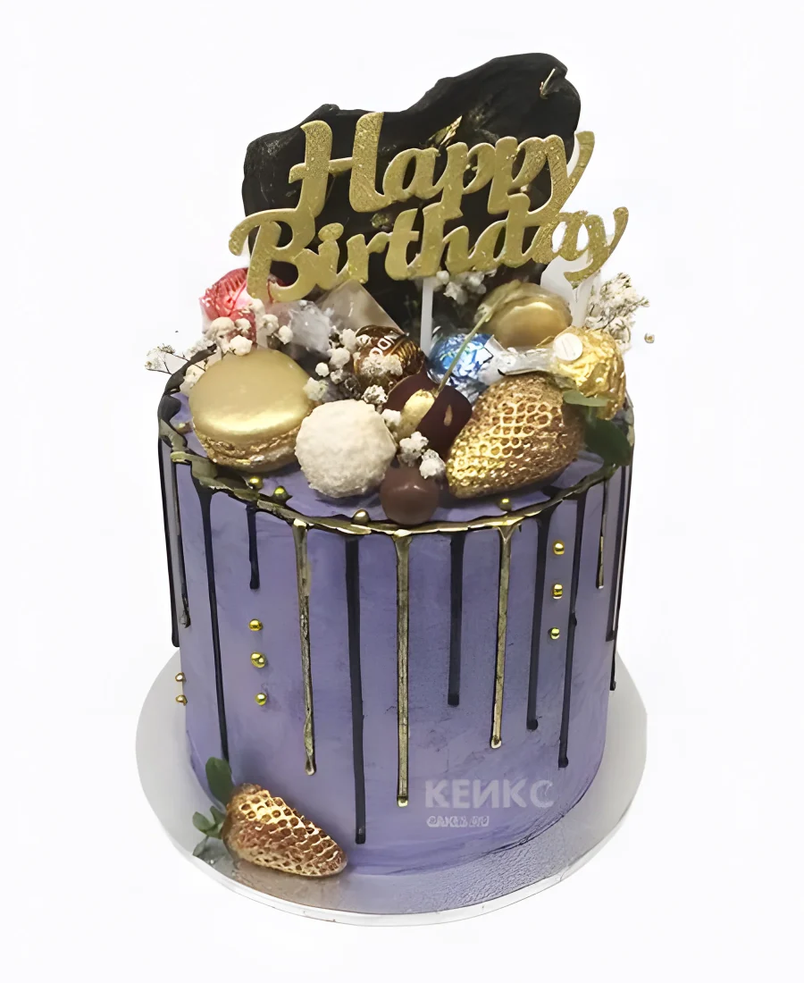Серый торт с золотыми украшениями