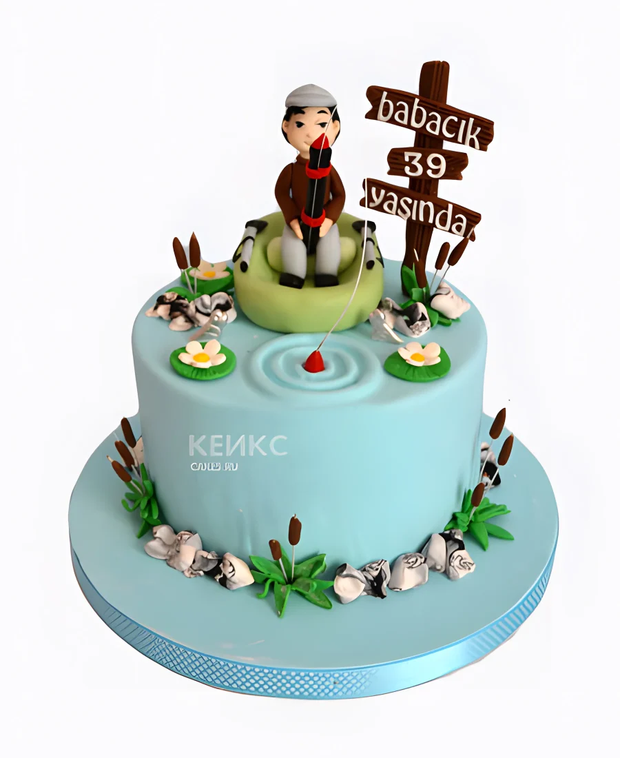 Торт с рыбаком и надписью