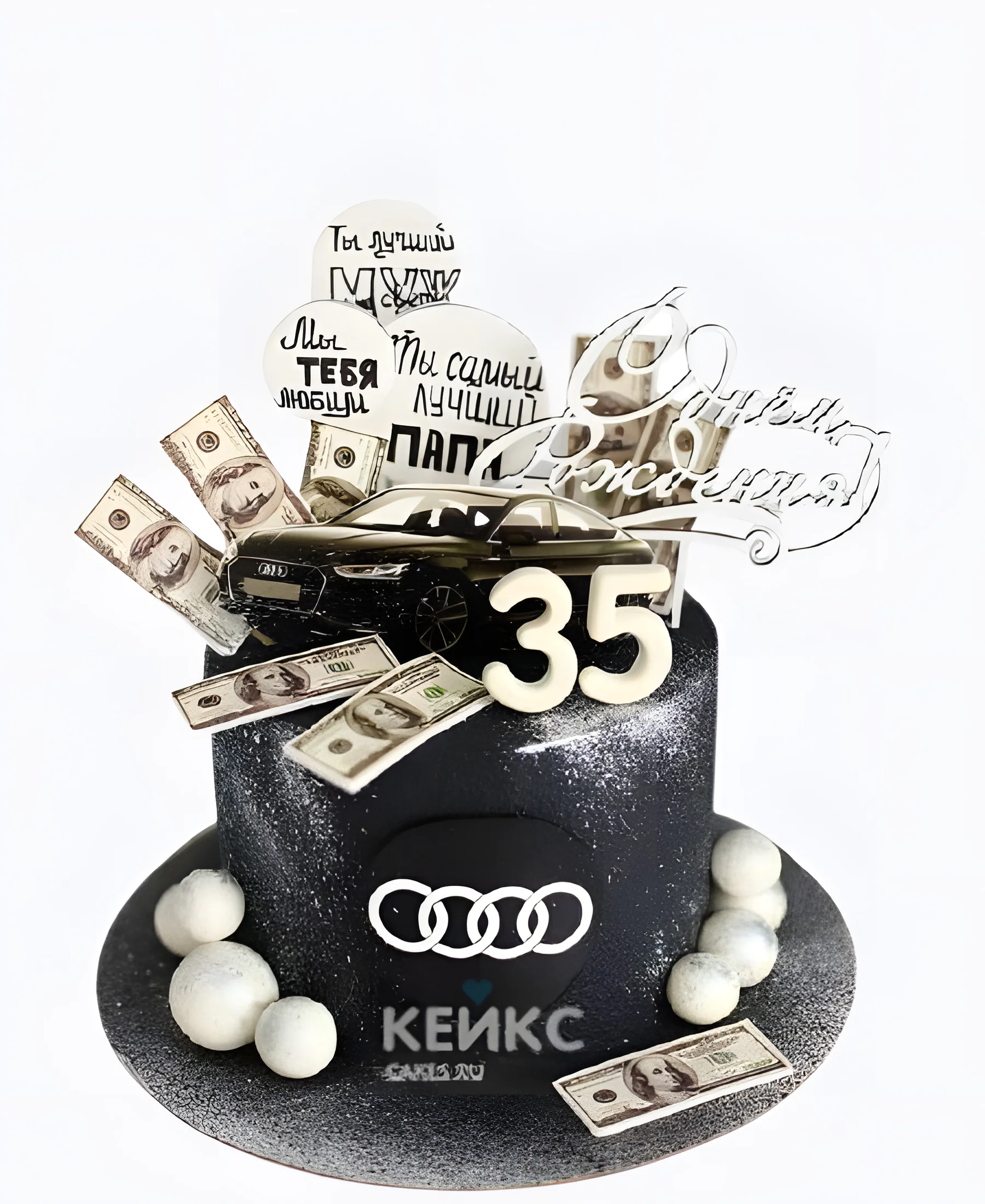 Торт мужчине на день рождения с машиной и купюрами