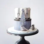 Этот элегантный двухъярусный торт в виде стильной рубашки с галстуком и кедами создан для настоящих джентльменов. Белоснежная мастика с лаконичными складками имитирует текстуру ткани, а аккуратные детали в виде пуговиц и швов добавляют реалистичности. Ярко-синий галстук и контрастные шнурки на миниатюрных кедах создают игривый акцент. Сдержанная цветовая гамма в бело-синих тонах подчеркивает мужской характер десерта, а цифры «25» напоминают о важном юбилее.